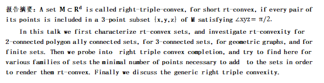 报告人简介: 苑立平,理学博士(中国),自然科学博士(德国),教授,博士生导师,河北师范大学数学科学学院院长;中国数学会常务理事,中国工业与应用数学学会理事,高等学校大学数学课程教学指导委员会工作委员。主要从事离散与组合几何领域的研究工作,主持国家自然科学基金项目6项,省部级项目9项,研究工作得到了德国ZAV、WUS提供的优秀回国专家科研项目资助。2010年入选“教育部新世纪优秀人才支持计划”和“河北省高校百名优秀创新人才支持计划”,同年获霍英东教育基金会第十二届高等院校青年教师奖;2013年获河北省杰出青年科学基金资助;2016年获河北省自然科学奖二等奖(第一完成人);2019年被评为河北省优秀回国人员,受到省政府表彰。