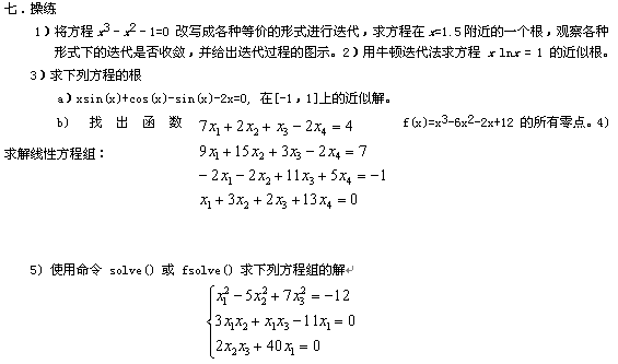 熟练掌握用 MATLAB 软件的函数来求解方程和方程组;