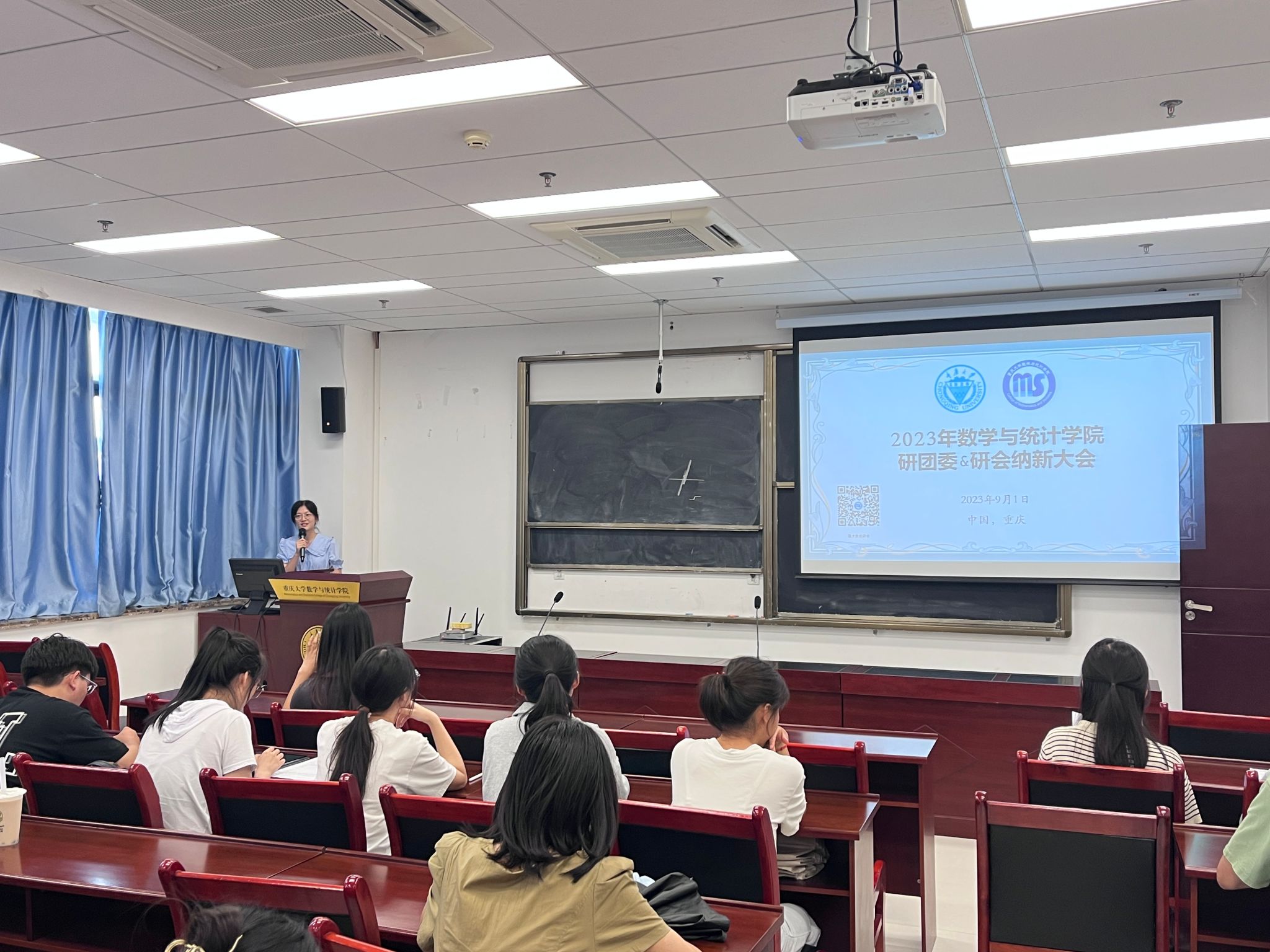 罗宥余老师向同学们详细介绍了研究生的教务工作,并逐一介绍了到场导师。