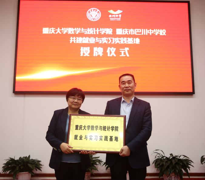 党委书记刘卫红就共建就业与实习实践基地向巴川中学校长蒋扬勇授牌。