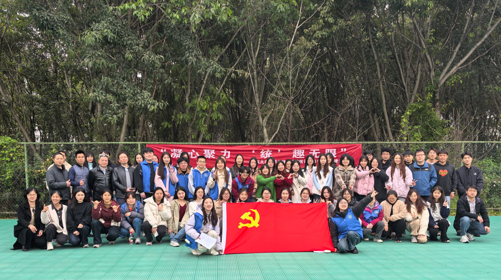 统计系师生党支部在兰园篮球场开展“凝心聚力‘统’趣无限”党建活动。学院党委副书记何清达出席活动并讲话,统计系3个师生党支部,共60余名党员参加活动。