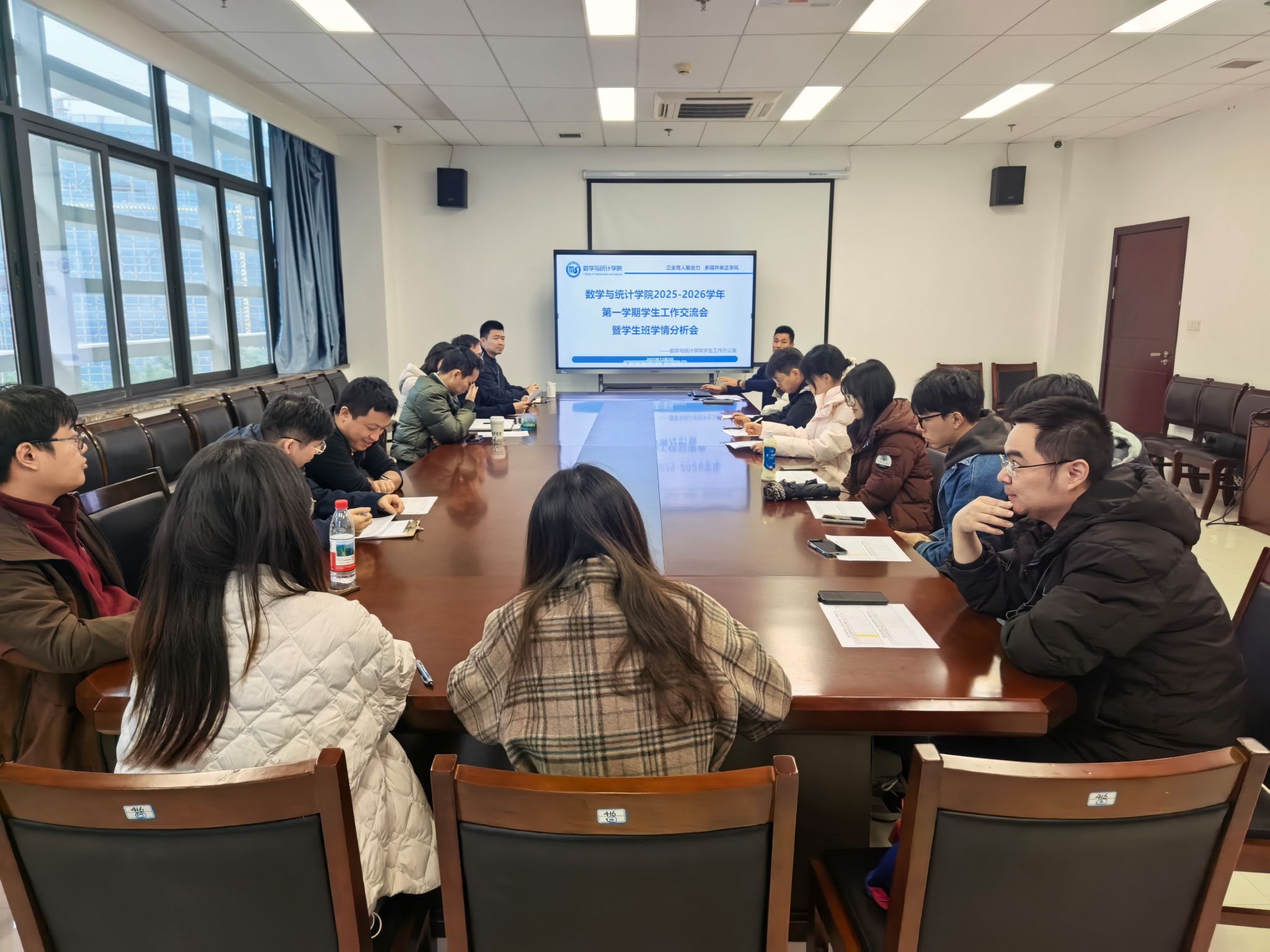 随后,各班主任和学业助理分别就班级日常管理作补充汇报,涵盖班会组织、课堂出勤、宿舍走访及学生咨询辅导等内容。与会人员围绕学风建设、心理健康教育、职业规划与就业指导等议题展开深入交流,并提出建设性意见。下一步,学院将持续加强课堂考勤、重点学生谈心谈话与关爱帮扶、学业督促及家校联动等工作,全面提升学院班风学风建设的实效。