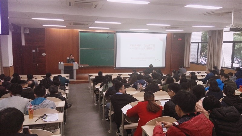 2017年11月29日下午2点,学校十九大精神宣讲团在第一教学楼D1125展开以“开启新时代 迈向新目标”为主题的十九大精神解读活动,搜书吧