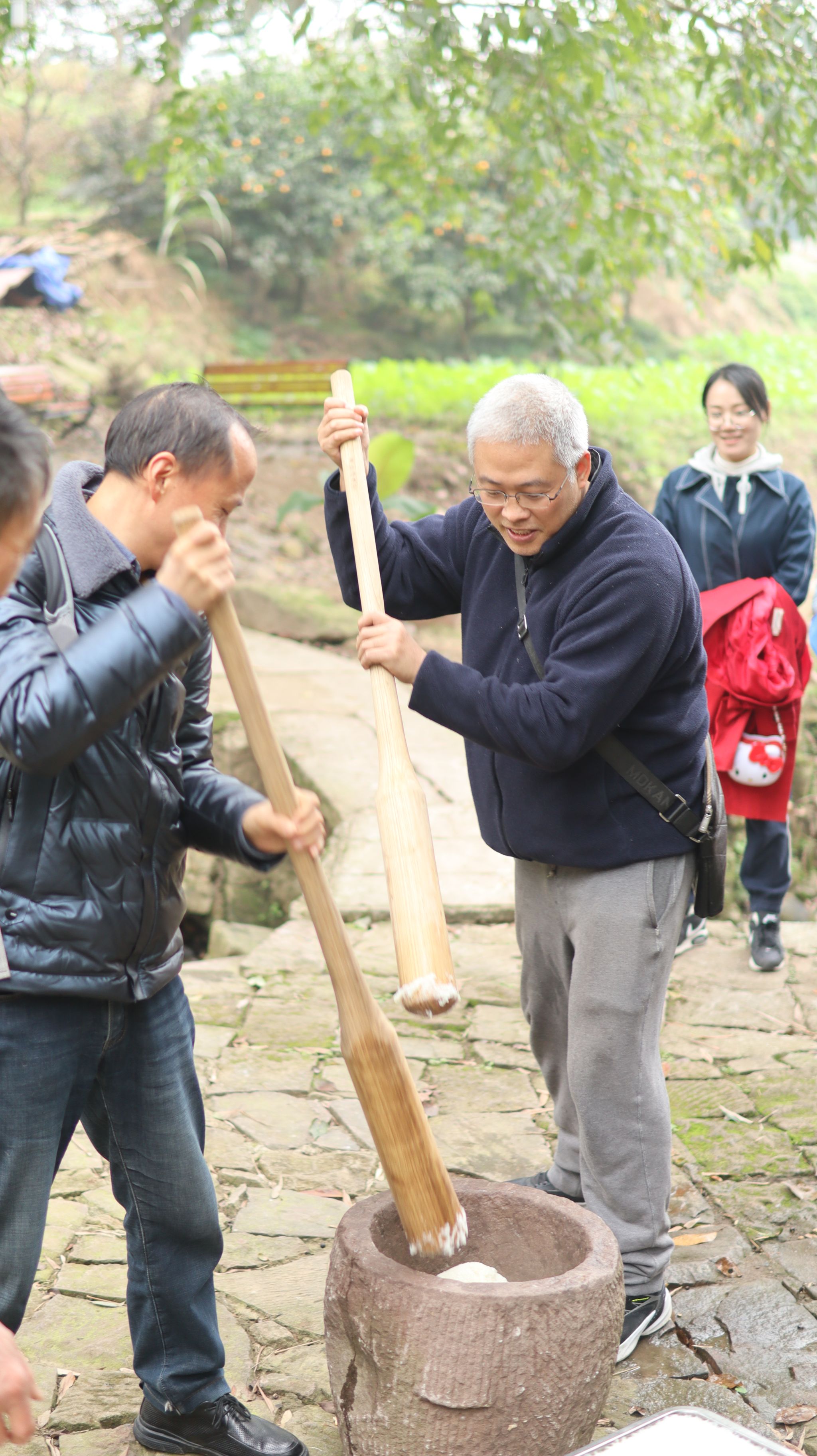 简短的热身后,教师们摩拳擦掌,开启农耕、非遗手作等活动。“纸上得来终觉浅,绝知此事要躬行”。在田间大课堂里,教师们摘橘子、打糍粑,体验劳动的喜悦。