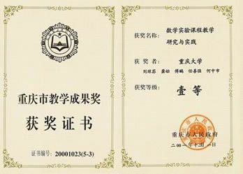 重庆市优秀电教科研成果二等奖:“数学实验课程多媒体电子课件”,重庆市教委颁发, 2002.11 ,龚劬,刘琼荪;
